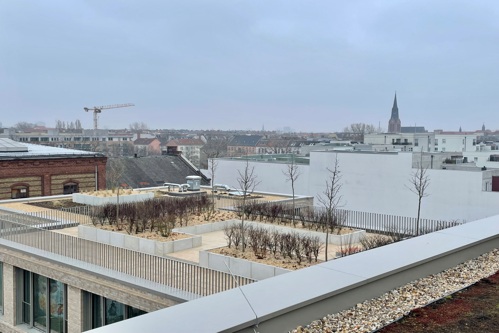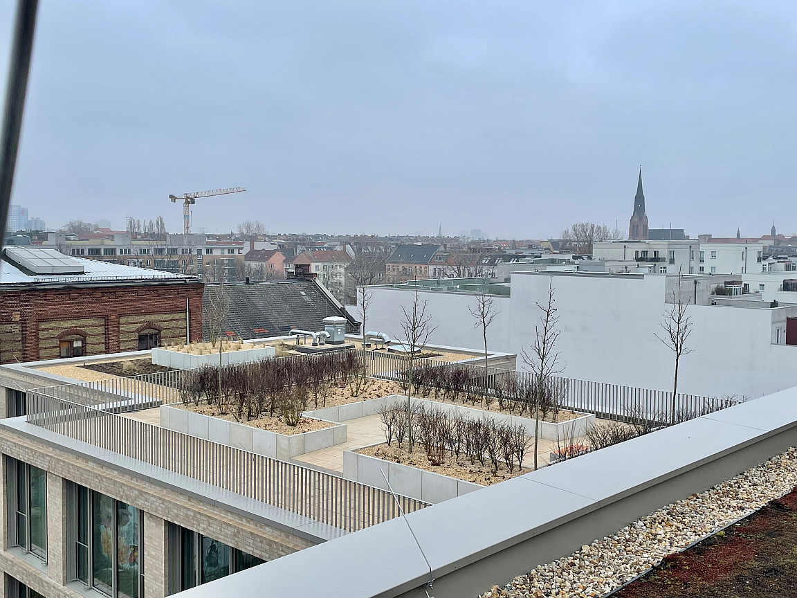 Anlegung von Dachgärten und Dachterrasse für ein modernes Bürogebäude